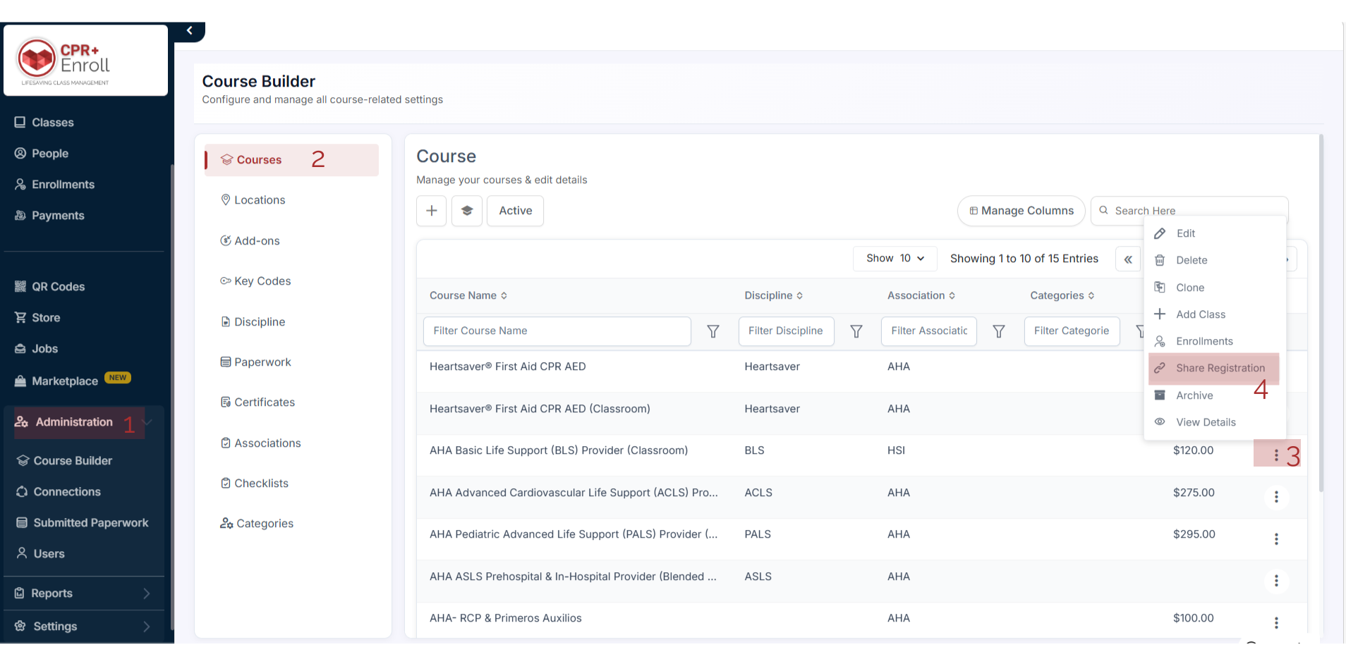 If you want to send a link for a specific course (e.g., "BLS Provider"), follow these steps: