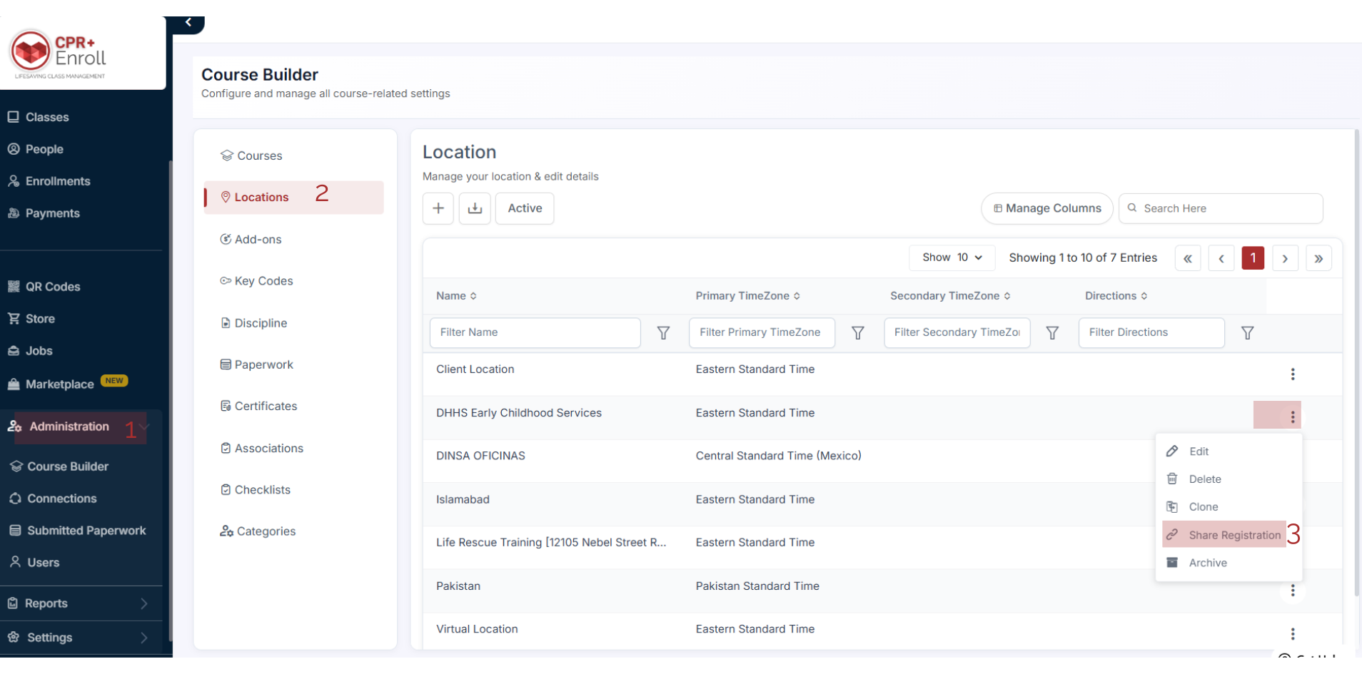 For those managing large numbers of courses or locations, you can generate a complete list of all registration links at once. Navigate to Settings > Site Compliance and click Export All Link in the top-right corner. This spreadsheet is a perfect resource for your web developers, marketing team, or class administrators.